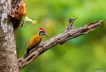 三趾啄木鸟,是啄木鸟科、啄木鸟属的小型鸟类,体长20-23厘米,雄鸟头顶金黄色,雌鸟黑色而具白色斑点。眼至耳覆羽黑色,眼后有一条白色纵纹,颊纹白色,颚纹黑色,甚为醒目。枕和后颈黑色,…全部>>