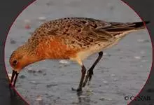 红腹滨鹬,是鹬科、滨鹬属的小型涉禽,体长23-25厘米,嘴较短而直、黑色,脚亦甚短、绿色。体较粗胖。夏季上体灰褐色具黑色中央纹,背具棕栗色和白色斑纹和羽缘,头侧和整个下体栗红色。冬季棕红色消失,…全部>>