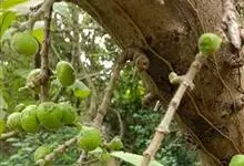 大果榕是桑科榕属的小乔木,株高可达10米;幼枝被柔毛;叶互生,宽卵状心形或近圆形;雄花无梗、匙形、花丝长,雌花生于雌株榕果内,子房白色;榕果簇生于树干基部或老茎短枝上、扁球形或陀螺形,…全部>>