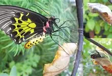金裳凤蝶是凤蝶科、裳凤蝶属的动物。金裳凤蝶身体呈黑色,头、颈和胸侧有红毛,腹部有黑黄两色相间条纹,雄蝶前翅黑色,具黑天鹅绒光泽,各脉两侧灰白色,后翅金黄色,各室外缘有等腰三角形黑斑1枚,斑内侧有晕,…全部>>