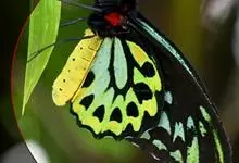 荧光裳凤蝶是凤蝶科裳凤蝶属的一种大型蝴蝶,该物种共有3个亚种。该蝶飞翔的时候姿态优美,前翅黑色,后翅金黄色和黑色交融的斑纹在阳光照射下金光灿灿,显得华贵美丽。幼虫寄主为多种马兜铃属的植物,取食马兜铃…全部>>