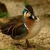 绿翅鸭是小型鸭类,体长37厘米,体重约0.5千克。嘴脚均为黑色。雄鸟头至颈部深栗色,头顶两侧从眼开始有一条宽阔的绿色带斑一直延伸至颈侧,尾下覆羽黑色,两侧各有一黄色三角形斑,在水中游泳时,极为醒目。…全部>>