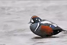 花脸鸭属小型鸭类,个体较绿翅鸭稍大,而较针尾鸭稍小。体长37-44厘米,体重0.5千克左右。雄鸭繁殖羽极为艳丽,特别是脸部由黄、绿、黑、白等多种色彩组成的花斑状极为醒目。胸侧和尾基两侧各有一条垂直白带,…全部>>