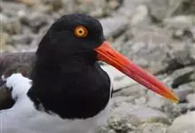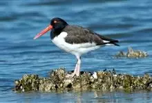 蛎鹬是鸻形目蛎鹬科蛎鹬属。蛎鹬的成鸟夏羽头、颈、胸和上体大部分为乌亮的黑色,腰到尾上覆羽白色,尾羽基部白色,端部黑色;翼上黑色,具有白横斑;下体胸部以下白色,翼下白色带黑缘;虹膜红色,啄和眼圈橘色,…全部>>