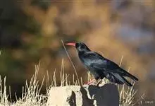 红嘴山鸦,是脊索动物门鸟纲雀形目鸦科鸟类。红嘴山鸦的成鸟通体羽毛纯黑色具有蓝色金属光泽,翼和尾泛有蓝绿色金属光泽;虹膜暗褐色,喙较为尖细,并且呈镰状下弯,喙和脚朱红色。…全部>>