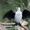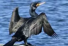 普通鸬鹚是属于鲣鸟目鸬鹚科鸬鹚属鸟类,又名水老鸦、鱼鹰、乌鬼、黑鱼郎等。体长720—900毫米,雌雄同型。通体黑色,有绿褐色金属光泽;喙厚重,喙基和喉囊橙黄色,脸颊及喉白色;夏羽颈及头饰具白色丝状羽,…全部>>
