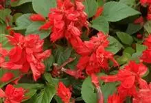 一串红,又称爆仗红、象牙红,为唇形科鼠尾草属植物。花序修长,色红鲜艳,花期又长,适应性强,为中国城市和园林中最普遍栽培的草本花卉。原产巴西、南美洲。喜温暖和阳光充足环境。不耐寒,耐半阴,忌霜雪和高温,…全部>>
