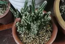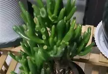 筒叶花月,是景天科青锁龙属的多年生草本植物。植株多分株,灌木状,茎较粗壮,圆柱形,表皮灰褐色;叶片肉质,互生,呈圆筒状,簇生于茎或分枝顶端,叶端呈斜截形,截面为椭圆形;花呈星状,淡白色;花期秋季。…全部>>
