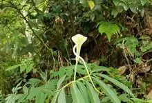 一把伞南星 Schott):是天南星科、天南星属的植物。块茎扁球形,直径可达6厘米,表皮黄色,有时淡红紫色。鳞叶绿白色、粉红色、有紫褐色斑纹。叶1,极稀2,叶柄长40-80厘米。花序柄比叶柄短,直立,…全部>>