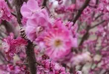 宫粉梅 Rehd.)是蔷薇科、李属植物,梅花品系中真梅系直枝梅类宫粉型,其花复瓣至重瓣,呈或深或浅的红色。落叶乔木,高达10米。树干褐紫色,有纵驳纹,小枝细而无毛,多为绿色。叶广卵形至卵形,…全部>>