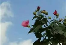 木芙蓉,锦葵科木槿属落叶灌木或小乔木。小枝上有细绒毛;叶片为卵状心形,托叶为披针形,常早落;花单生,花萼为钟形,花冠初为白色或淡红色,后逐渐变为深红色;果实为扁球形,有淡黄色的毛附着。花期8到10月。…全部>>