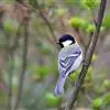 褐头山雀:共有14个亚种,是一种小型的山雀。头顶及颏褐黑,上体褐灰,颊白,颏和喉黑色,下体近白,腹部棕色,两胁皮黄,无翼斑或项纹。与沼泽山雀易混淆,但一般具浅色翼纹,黑色顶冠较大而少光泽,头显比例较大。…全部>>