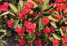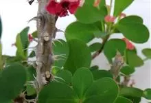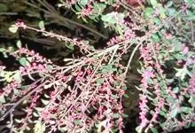 虎刺梅:别称铁海棠,是蔓生灌木植物。茎多分枝,长60-100厘米,直径5-10毫米,具纵棱,密生硬而尖的锥状刺,刺长1-1.5厘米,直径0.5-1.0 毫米,常呈3-5列排列于棱脊上,呈旋转。叶互生…全部>>