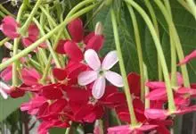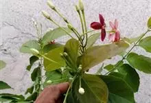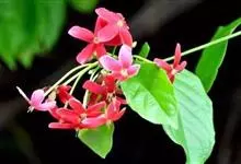 使君子 Jongkind)是使君子科、使君子属攀援灌木,叶对生,椭圆形,两面均被灰白色柔毛。穗状花序,倒挂下垂。花期夏秋。果有五棱,熟时黑色,种子白色。分布于印度、缅甸、菲律宾和中国。喜温润,深根性,…全部>>