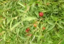 欧李,蔷薇科李属落叶灌木植物,高1.5米。树皮灰褐色,小枝被柔毛;叶互生长圆形或椭圆状披针形;花与叶同时开放,单生或并生,花瓣白色或粉红色;核果近球形,熟时鲜红色或橘黄色。花期4-5月,果期5-6月。…全部>>