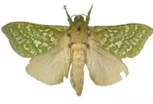 鬼脸天蛾,是鳞翅目天蛾科面形天蛾属动物。成虫翅展100~125毫米,体黑褐色;胸背有骷髅形斑纹;卵圆球形,直径约2毫米,淡黄绿色,表面光滑;老熟幼虫体长70~90毫米,蛹体长约56毫米;前翅为褐色,…全部>>