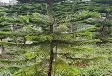 澳洲杉,常绿乔木,一般盆栽为幼树,高在2米以下。喜温暖、潮湿的环境,树冠尖塔形,深绿色。茎干直立,侧枝轮生,水平伸展。小枝二列互生,水平延伸或略下垂。叶有二型。球果近圆形。 全部>>