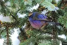 凤头雀莺:小型鸟类。体长9-10厘米,雄鸟呈毛茸茸的紫色和绛紫色,顶冠淡紫灰色,额及凤头白色,尾全蓝。雌鸟喉及上胸白,至臀部渐变成淡紫色,耳羽灰,…全部>>