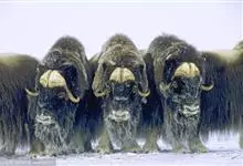麝牛,是偶蹄目牛科麝牛属哺乳动物。麝牛体型大,但低矮粗壮,头大,吻部宽,眼小;雌雄均具角,四肢短粗,蹄宽大;毛被厚,极耐寒,尾短。雄麝牛在发情时会散发出一种类似麝香的气味,又称麝香牛。…全部>>