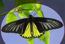 荧光裳凤蝶是凤蝶科裳凤蝶属的一种大型蝴蝶,该物种共有3个亚种。该蝶飞翔的时候姿态优美,前翅黑色,后翅金黄色和黑色交融的斑纹在阳光照射下金光灿灿,显得华贵美丽。幼虫寄主为多种马兜铃属的植物,取食马兜铃…全部>>