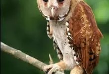 栗鸮:是鸟纲、草鸮科的猫头鹰。体长约29厘米,体重311-360克。是一种中等体型的红褐色鸮。其心形脸庞及时而竖起的“耳朵”与仓鸮甚似。上体红褐而具黑白点斑,下体皮黄偏粉具黑点,脸近粉色。虹膜深褐色,…全部>>