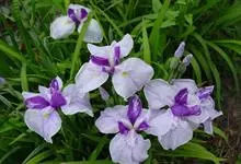 花菖蒲:是玉蝉花的变种。多年生宿根挺水型水生花卉。根状茎短而粗,须根多并有纤维状枯叶梢,叶基生,线形,叶中脉凸起,两侧脉较平整。花葶直立并伴有退化叶1-3枚。花大直径可达15厘米。外轮三片花瓣呈椭圆…全部>>