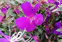 野牡丹:灌木,高0.5-1.5米,分枝多;茎钝四棱形或近圆柱形,毛扁平边缘流苏状。叶片坚纸质,卵形或广卵形,全缘,7基出脉,两面被糙伏毛及短柔毛。伞房花序生于分枝顶端,近头状,…全部>>