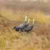 白枕鹤体形与丹顶鹤相似,略小于丹顶鹤,而大于白头鹤。上体为石板灰色。尾羽为暗灰色,末端具有宽阔的黑色横斑。取食时主要用喙啄食,或用喙先拨开表层土壤,然后啄食埋藏在下面的种子和根茎,边走边啄食。…全部>>