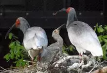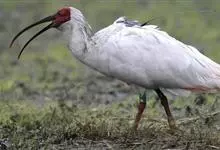 朱鹮是鹈形目鹮科朱鹮属的鸟类动物。其雄鸟通体白色,羽干及两翅与尾等均沾染粉红色;颈项上有很多长矛状羽毛,形成羽冠,耸立时非常夺目;嘴长而向下曲,呈黑色,先端朱红,脚的裸露部分亦呈亮红色。雌鸟羽色略同,…全部>>