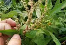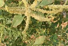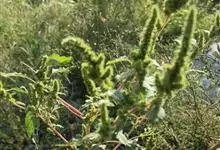 反枝苋是苋科苋属的一年生草本植物。株高达1米;茎密被柔毛;叶菱状卵形或椭圆状卵形,先端锐尖或尖凹,两面及边缘被柔毛,下面毛较密;穗状圆锥花序,顶生花穗较侧生者长;花被片长圆形或长圆状倒卵形,…全部>>