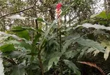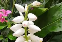 花叶山姜,为姜科,山姜属多年生草本植物,无地上茎;根茎平卧。叶片椭圆形,长圆形或长圆状披针形,长达可达15厘米,叶面绿色,叶背浅绿;两面均无毛,叶舌短,叶鞘红褐色。总状花序自叶鞘间抽出,花对生,花萼…全部>>