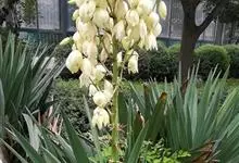 丝兰是天门冬科丝兰属植物。茎短或无茎;圆锥花序烛台状,花朵杯形,下垂,白色;叶基部呈剑形放射状,被白粉,革质;花期8—10月。丝兰原产于北美,在中国长江流域一带和华北地区均有栽培,长江以南地区也有分布。…全部>>