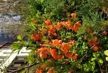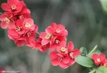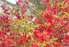 贴梗海棠 Nakai)是蔷薇科、木瓜海棠属植物。落叶灌木,高达2米,枝条直立开展,有刺。叶片卵形至椭圆形,稀长椭圆形,长3-9厘米,宽1.5-5厘米。花先叶开放,3-5朵簇生于二年生老枝上。…全部>>