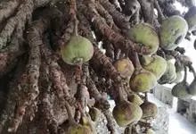 大果榕是桑科榕属的小乔木,株高可达10米;幼枝被柔毛;叶互生,宽卵状心形或近圆形;雄花无梗、匙形、花丝长,雌花生于雌株榕果内,子房白色;榕果簇生于树干基部或老茎短枝上、扁球形或陀螺形,…全部>>