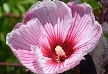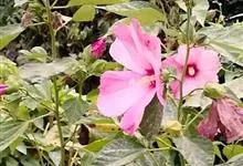 芙蓉葵是锦葵科木槿属植物,又名草芙蓉、大花秋葵,原产于北美。落叶灌木状。叶大、广卵形,叶柄、叶背密生灰色星状毛。花大,单生于叶腋,有白、粉、红、紫等色。喜阳、略耐阴,宜温暖湿润气候,忌干旱,耐水湿,…全部>>