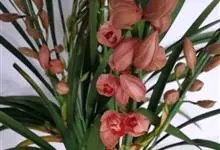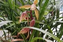 建兰 Sw.):地生植物;假鳞茎卵球形,包藏于叶基之内。叶2-6枚,带形,有光泽,长30-60厘米,宽1-2.5厘米。花葶从假鳞茎基部发出,直立,一般短于叶;总状花序具3-9朵花;花常有香气,…全部>>