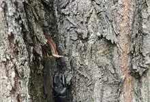 中国大锹,鞘翅目锹甲科刀锹属昆虫,雄虫体长多为40—-75毫米,宽15—30毫米。体扁宽,长椭圆形,前胸背板中点最宽,四缘有边框,前缘波形。全体黑色,背面不被毛,光泽中等。雌虫体长多为31—52毫米,…全部>>