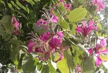 羊蹄甲,别名紫花羊蹄甲、玲甲花,是豆科羊蹄甲属的一种常绿乔木或灌木。树冠开展,枝桠低垂;树皮灰色至暗褐色,近光滑。枝幼时微被灰色短柔毛,后毛脱落;叶硬纸质,近圆形,基部浅心形,…全部>>
