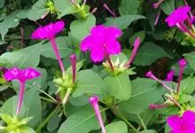 紫茉莉,别名晚饭花、晚晚花、野丁香、苦丁香等,为紫茉莉科紫茉莉属的一年生草本植物。其根肥粗,倒圆锥形,黑色或黑褐色;茎直立,圆柱形;叶片卵形或卵状三角形;花常数朵簇生枝端;总苞钟形,…全部>>