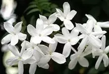 素馨花,木犀科素馨属多年生的攀援灌木植物。攀援灌木,小枝圆柱形,具棱或沟;叶对生,叶轴常具窄翼,小叶片卵形或长卵形;聚伞花序顶生或腋生,花序梗长,苞片线形,花萼无毛,裂片锥状线形,花冠白色,…全部>>