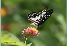 青带凤蝶Graphium sarpedon ,又名青凤蝶,是最普遍的中型凤蝶,飞行速度很快。青带凤蝶的翅膀中央有许多浅蓝色的斑点,很整齐地排列成一条直线。这些斑点由上而下逐渐变大,就像一条青色的带子。全部>>