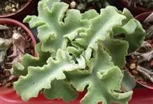 仙女之舞是景天科、伽蓝菜属植物。常绿肉质灌木,株高可达2-3米。幼株茎上有毛。叶有柄;单叶对生,阔卵状三角形,肉质;新叶开展,老叶正面凹、背面圆凸,缘具稀锯齿,橄榄绿色至灰绿色,被稠密的灰白色毛。…全部>>