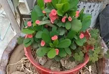 铁海棠为大戟科大戟属蔓生灌木植物;茎多分枝,具纵棱,呈旋转状;叶互生,通常集中于嫩枝上;每个花序基部边缘具微小的红色尖头;苞叶先端圆且具小尖头,无柄,上面鲜红色,下面淡红色;苞片丝状;子房光滑无毛,…全部>>