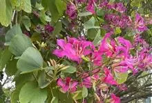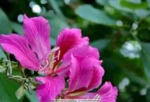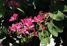 羊蹄甲,别名紫花羊蹄甲、玲甲花,是豆科羊蹄甲属的一种常绿乔木或灌木。树冠开展,枝桠低垂;树皮灰色至暗褐色,近光滑。枝幼时微被灰色短柔毛,后毛脱落;叶硬纸质,近圆形,基部浅心形,…全部>>