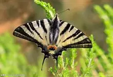 中华虎凤蝶是鳞翅目凤蝶科虎凤蝶属昆虫。双翅颜色为黄底黑纹,色如虎皮;雌、雄斑纹相同,但雌蝶的黄色往往要略深一些;后翅外缘呈波浪状,长有较短的尾突;除翅外,整体黑色,…全部>>