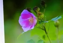 木芙蓉,锦葵科木槿属落叶灌木或小乔木。小枝上有细绒毛;叶片为卵状心形,托叶为披针形,常早落;花单生,花萼为钟形,花冠初为白色或淡红色,后逐渐变为深红色;果实为扁球形,有淡黄色的毛附着。花期8到10月。…全部>>