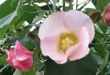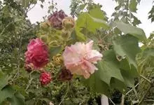 木芙蓉,锦葵科木槿属落叶灌木或小乔木。小枝上有细绒毛;叶片为卵状心形,托叶为披针形,常早落;花单生,花萼为钟形,花冠初为白色或淡红色,后逐渐变为深红色;果实为扁球形,有淡黄色的毛附着。花期8到10月。…全部>>
