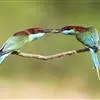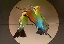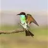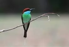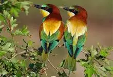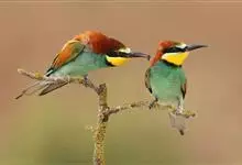 蓝颊蜂虎:是蜂虎科、蜂虎属的鸟类,共有2个亚种。体长27-33厘米,翼展46-49厘米,体重38-50克。嘴形细长而下弯,先端尖,…全部>>