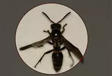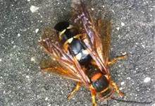 金环胡蜂是胡蜂科、胡蜂属昆虫。雌蜂体长约40毫米,工蜂体长25毫米,雌蜂体黑褐色,头部橙黄色,额片前缘弓形,中央凹,两边突出;触角12节,膝状,暗褐色;中胸背部中央有很细纵沟;翅膜质半透明,…全部>>