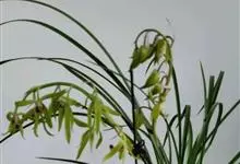 兰花:附生或地生草本,叶数枚至多枚,通常生于假鳞茎基部或下部节上,二列,带状或罕有倒披针形至狭椭圆形,基部一般有宽阔的鞘并围抱假鳞茎,有关节。总状花序具数花或多花,颜色有白、纯白、白绿、黄绿、淡黄、…全部>>